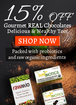 Sunbiotics Organic Probiotic Chocolate is the first raw and certified organic, probiotic enhanced, stone-ground chocolate bar. Each bar contains yacon root for its prebiotic effects, as well as real vanilla bean for the ultimate elevation of flavor, sweetened only with low-glycemic coconut sugar.